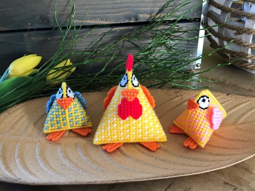 Elk patroon bevat een Nederlandstalige werkbeschrijving en een borduurpatroon.